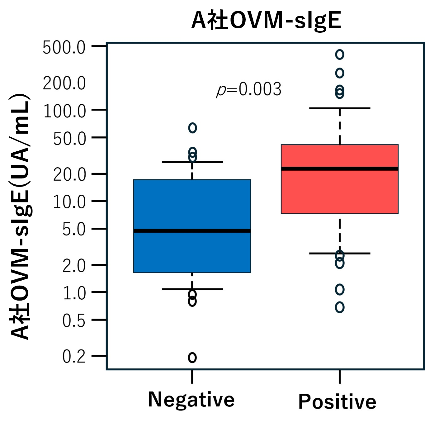特異的IgEについて統計学的有意差は確認できるが、患者個別の状態について評価はできない。