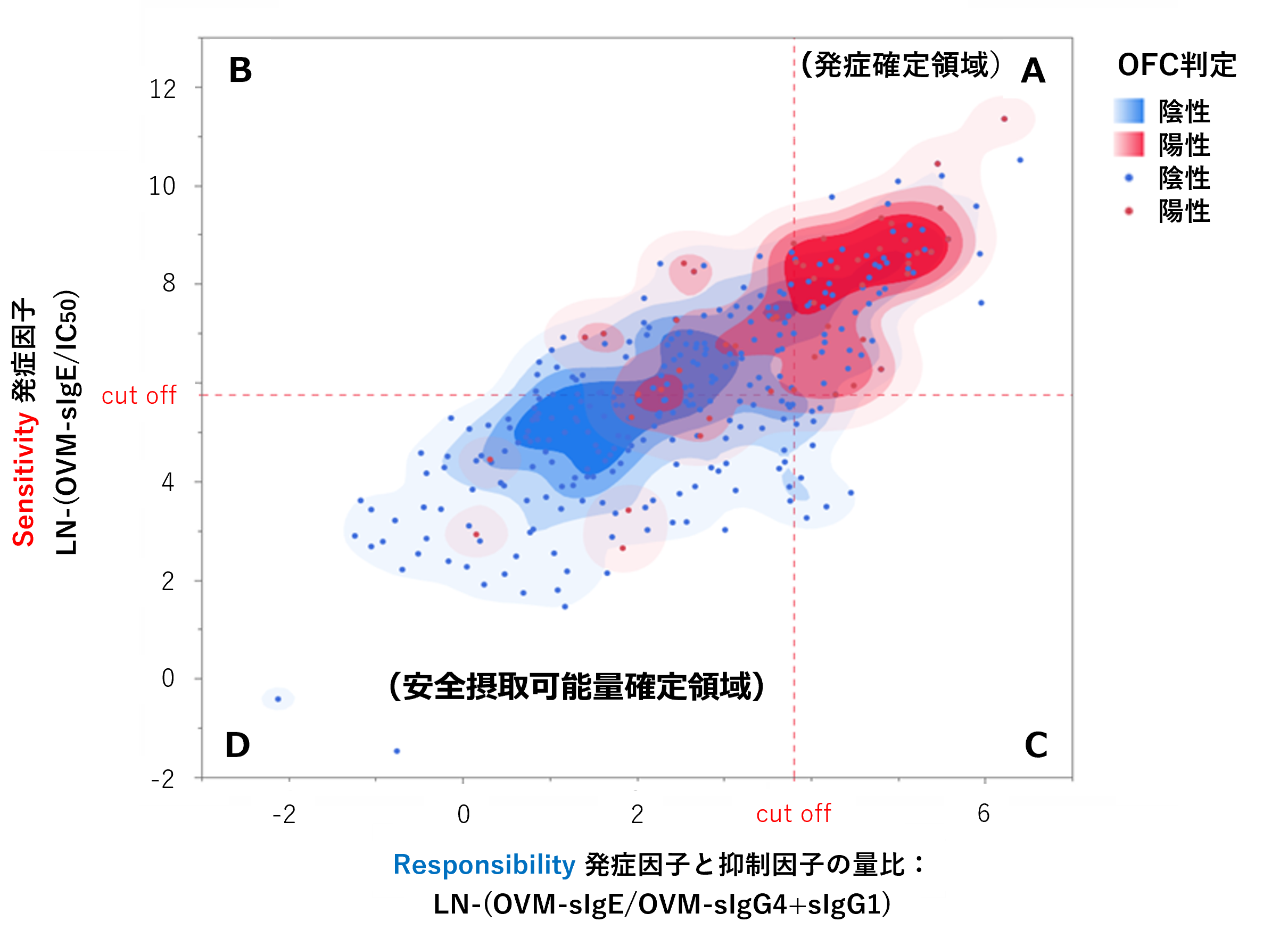 感度(Sensitivity)と信頼性(Responsibility)は領域DのOFC 陰性者を96.1%の確率で判定。この陰性者は以後OFC免除の可能性が高く、日常生活での安全摂取量の検討が可能。