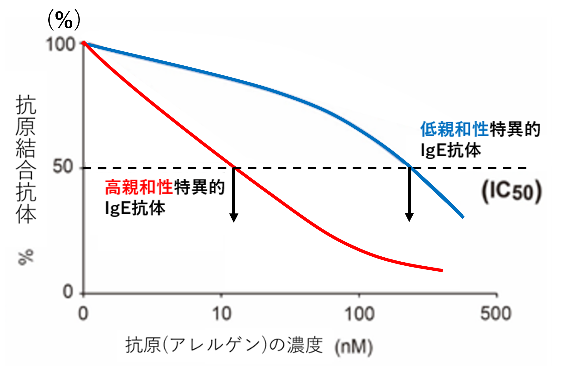 抗原結合親和性抗体価=IgE 抗体量(量)×抗原結合親和性(質:1/IC50 nM )