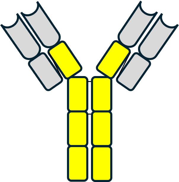 B細胞から分化した形質細胞によって産生される特異的に特定の物質(抗原)と結合する糖タンパク分子で、免疫グロブリンとも呼ばれる。 定常部の構造の違いによりIgM、IgD、IgG、IgA、IgEの5種類のクラス(アイソタイプ)に分類される。 抗体は血液中や体液中に遊離型として存在するか、またはB細胞表面上にB細胞受容体として存在する。 抗体は抗原と結合しマクロファージなどの食細胞に貪食されやすくする作用のほか、結合するだけでウイルスや細菌の感染性を低下させる中和作用により体内に侵入した抗原を排除する働きを担う。 また遺伝子再編成やB細胞では体細胞高頻度突然変異(somatic hyper-mutation)、イムノグロブリンクラススイッチなどにより様々な抗原に対応する抗体の多様性を作り出している。 |
